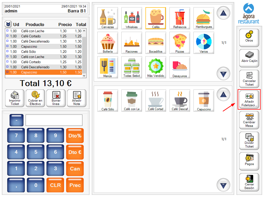 Si dispones del TPV Ágora Retail o Ágora Restaurant, puedes integrar FidelCity de manera sencilla con éste.