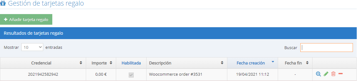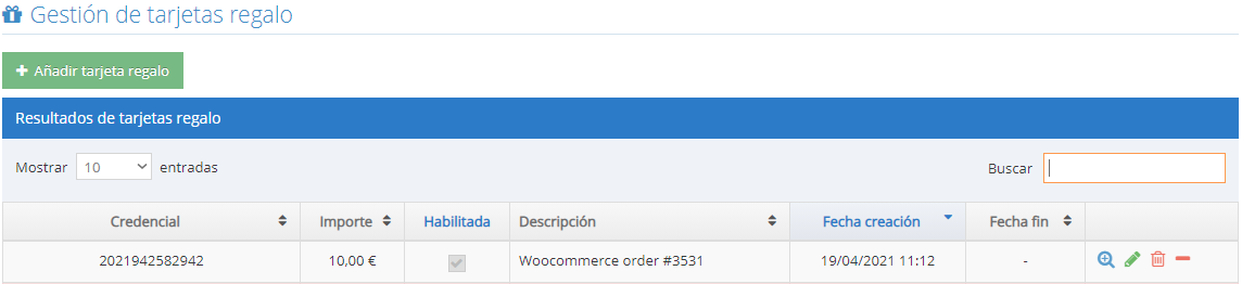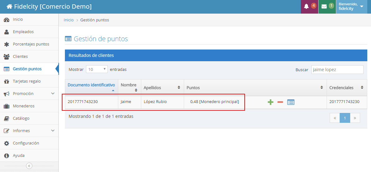 Como podemos ver se ha creado la tarjeta en FidelCity.