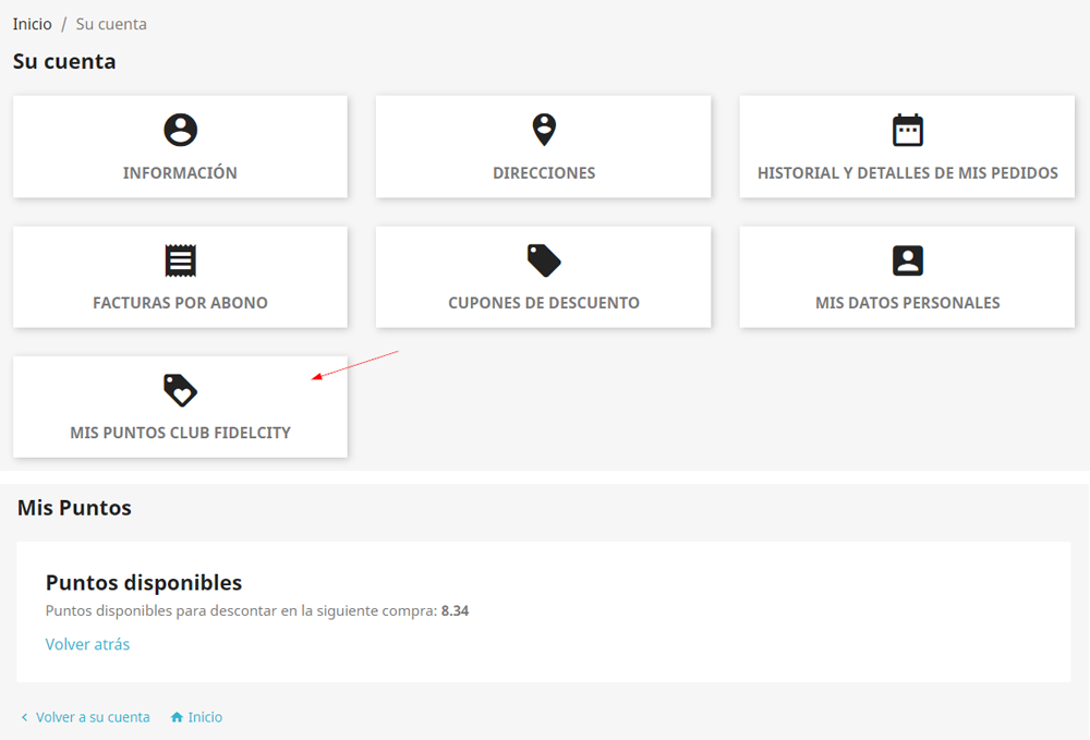 El cliente podrá consultar en todo momento el saldo actual entrando en Mi cuenta y seleccionando la opción Mis puntos Club FidelCity.