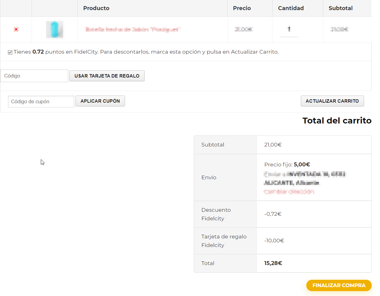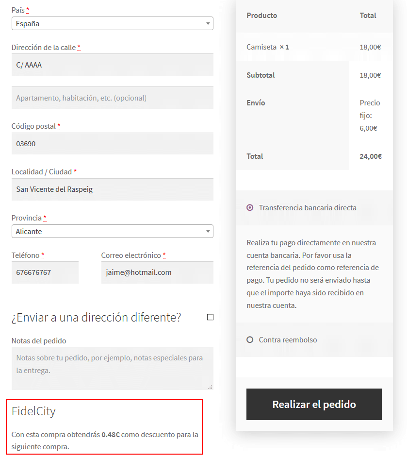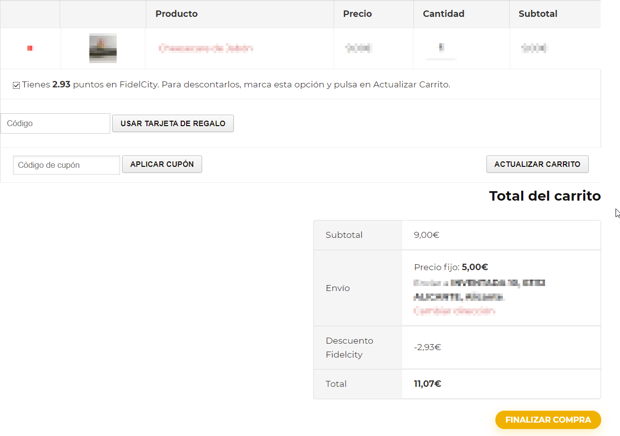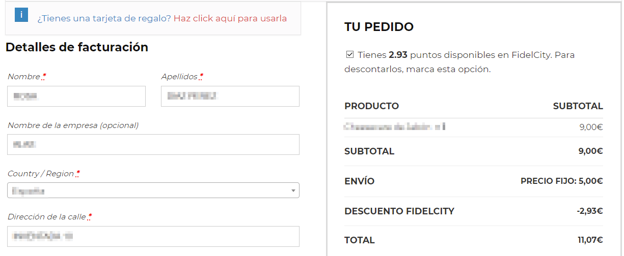 En ese momento, en la parte inferior de la pantalla aparecerá una sección con el importe que se le va a generar en FidelCity tras realizar la compra, el cual podrá ser consumido como descuento en su siguiente compra.