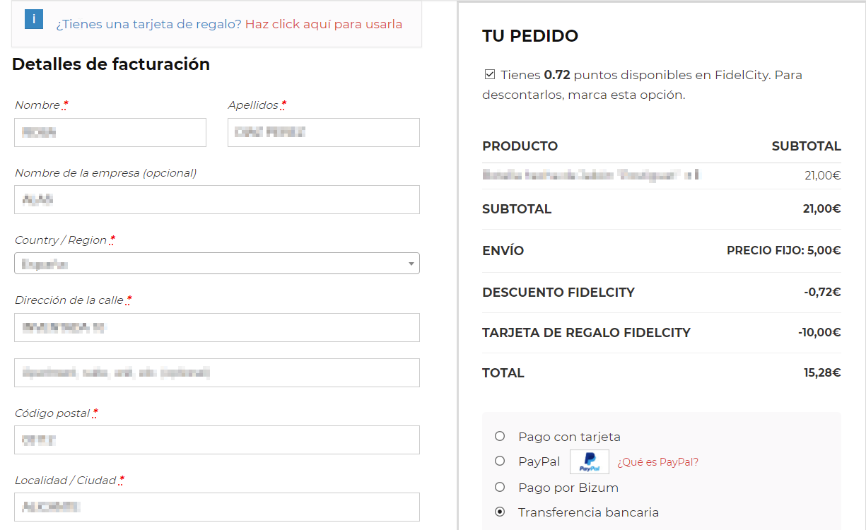 Cuando un cliente realiza una compra, en el proceso de pago tendrá que especificar sus datos personales y de envío.