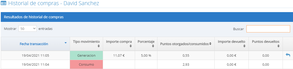 En la siguiente compra que realice el cliente, se descontará automáticamente el saldo de fidelización que se le otorgó y se le volverán a generar puntos por esta nueva compra. De esta manera, conseguimos que el cliente siempre tenga un motivo para volver a comprar en nuestra tienda.