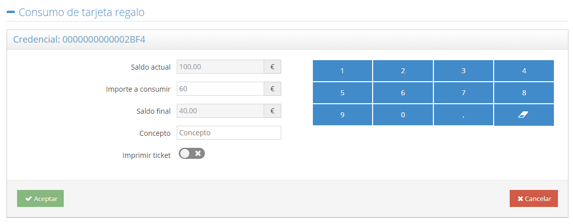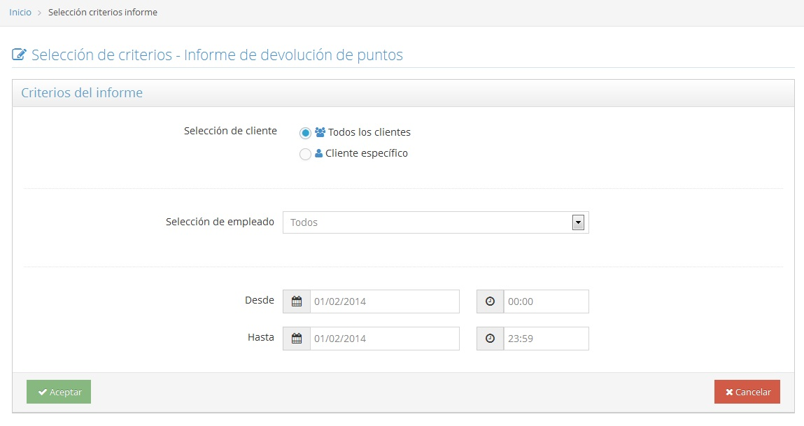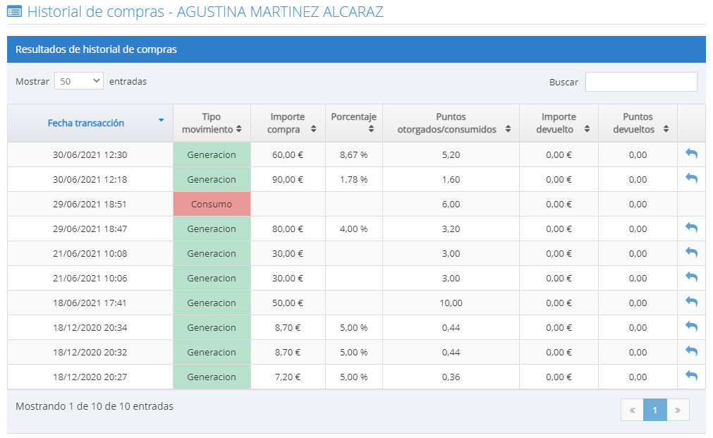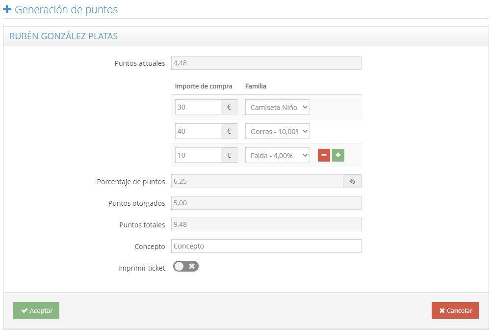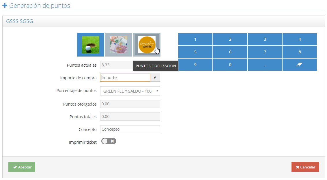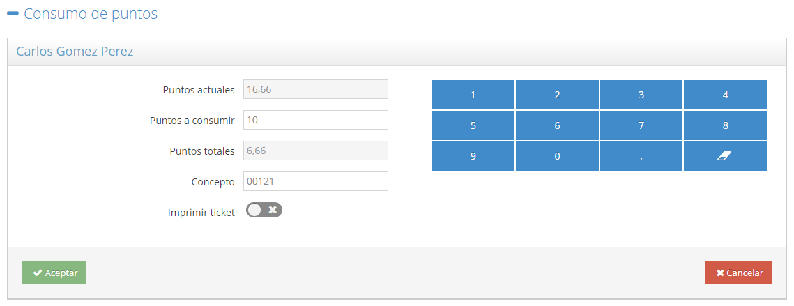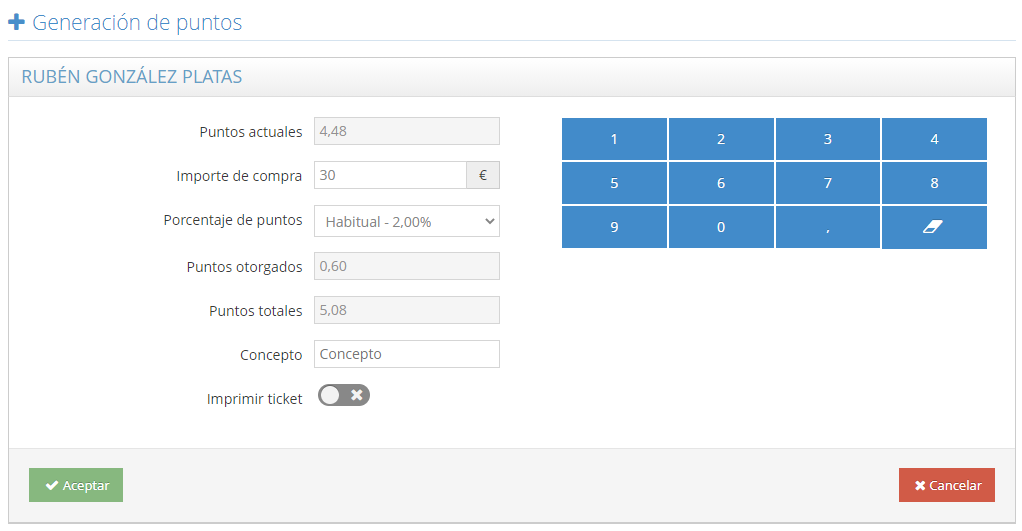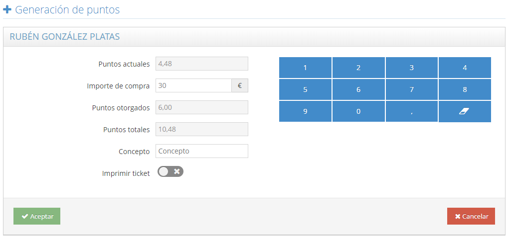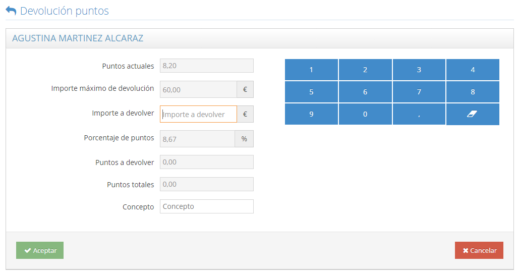 , escribe el importe a devolver y automáticamente se calculará los puntos a devolver. Después, haz clic en Aceptar.